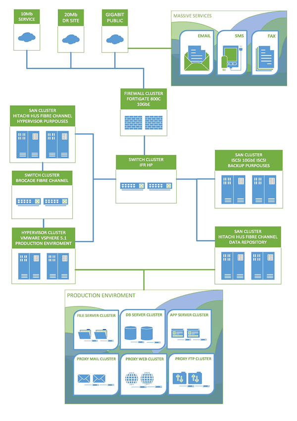 Infrastruttura Storage San Block Level Access basata su architettura Storage Hitachi in Cluster.